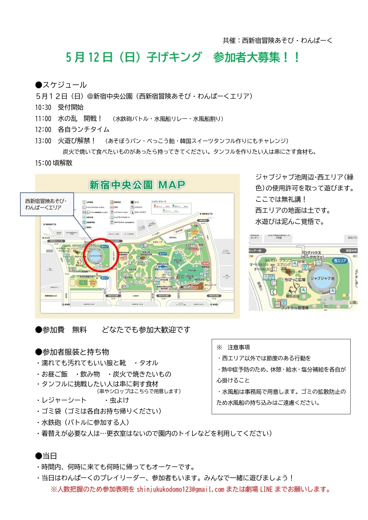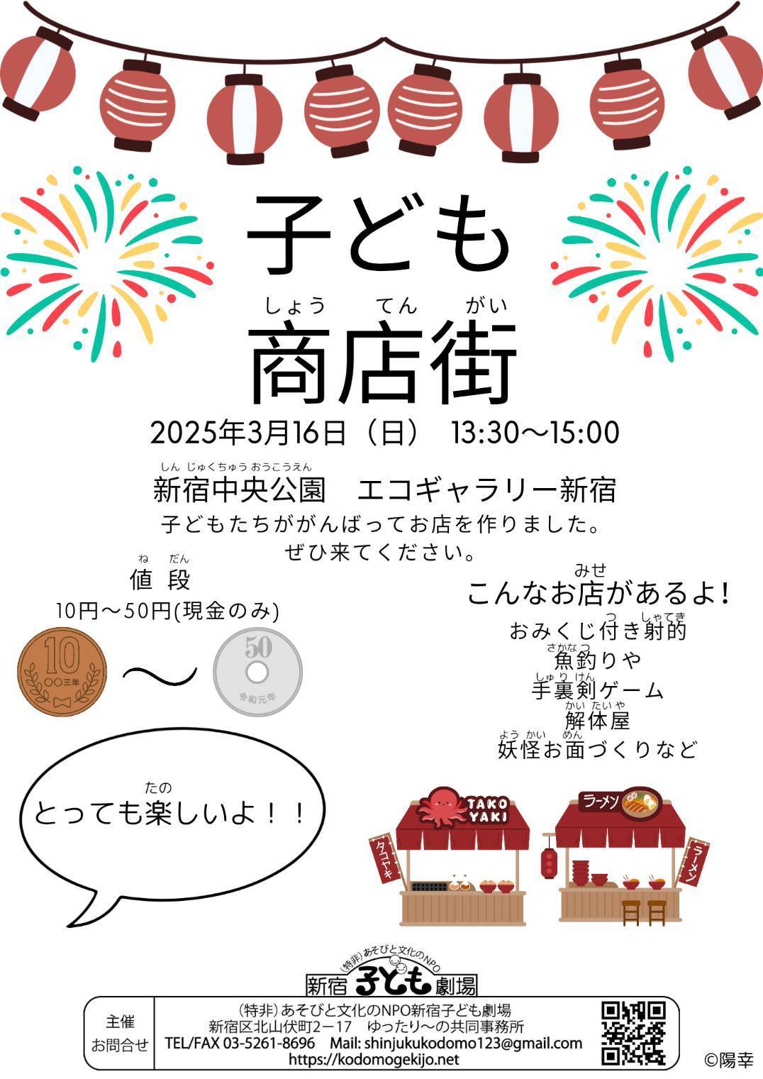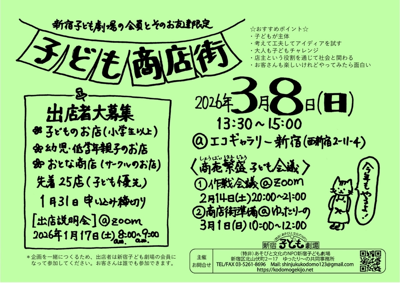 | 申込方法 | 出店・shinjukukodomo123@gmail.com お客様・申込不要 | ||