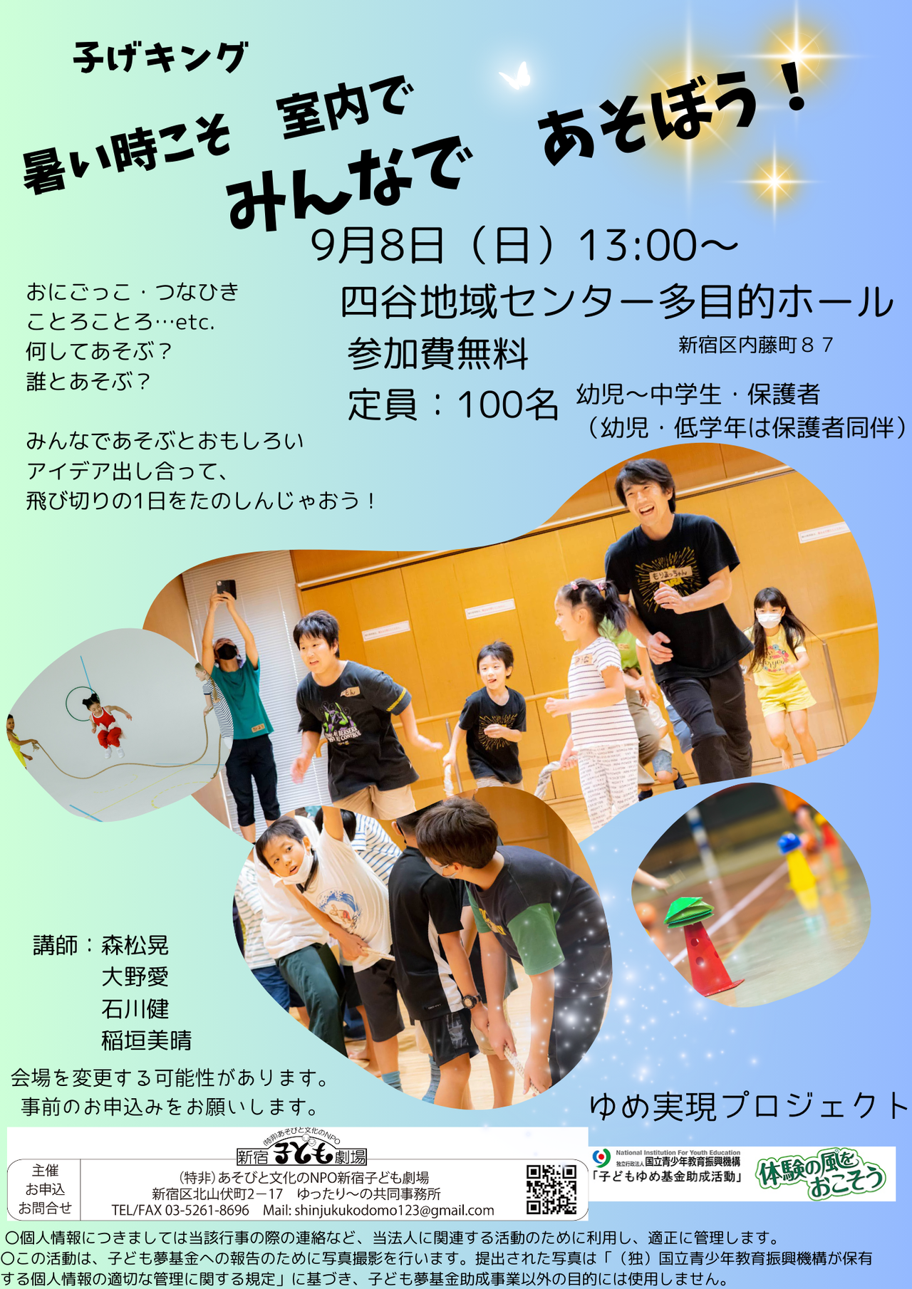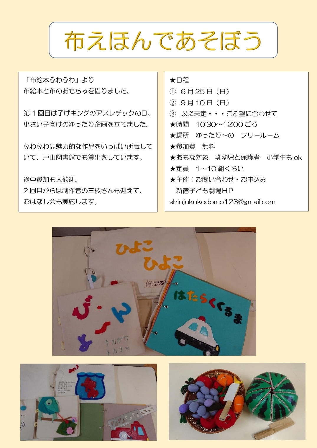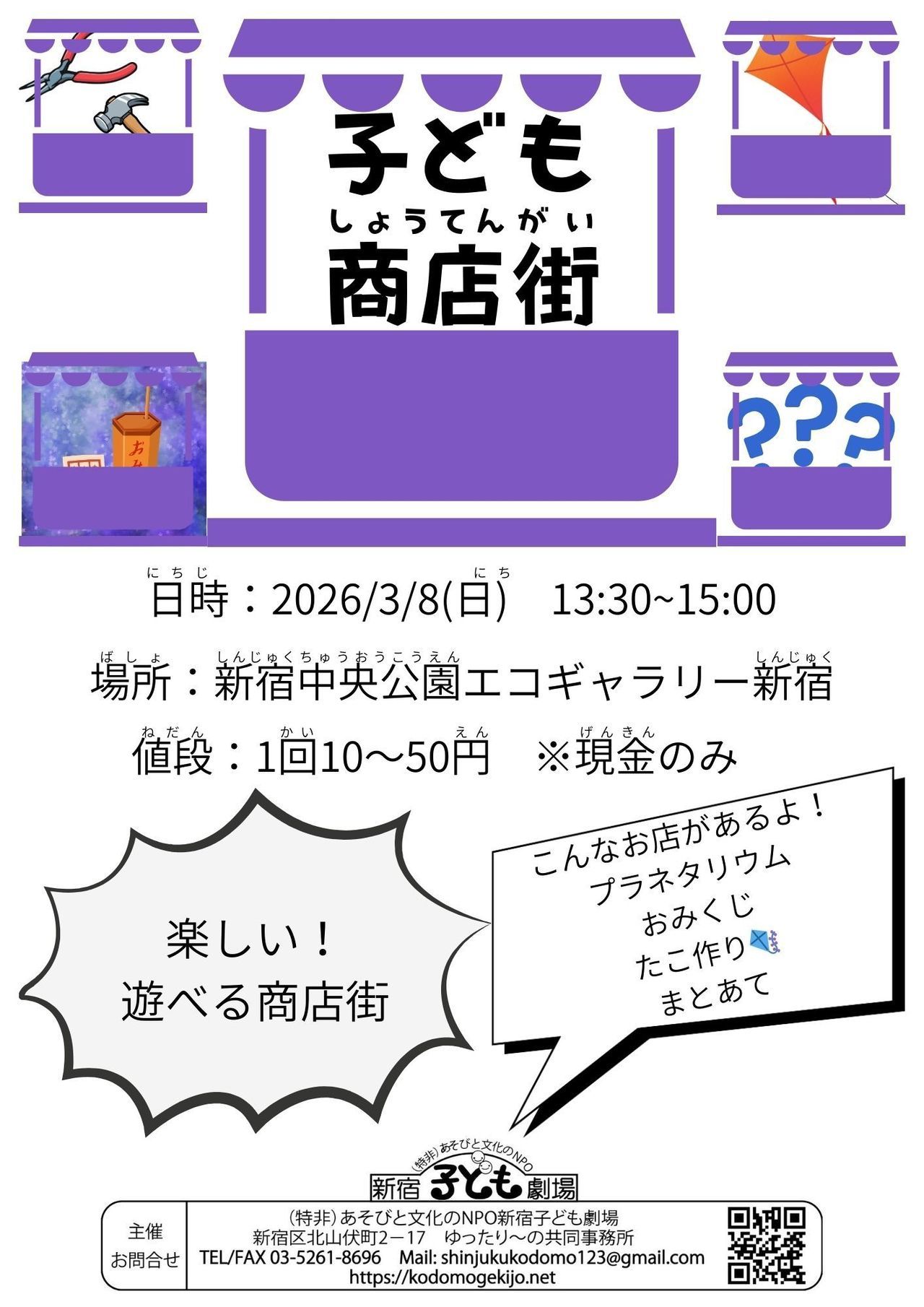 | 申込方法 | 出店・shinjukukodomo123@gmail.com お客様・申込不要 | ||