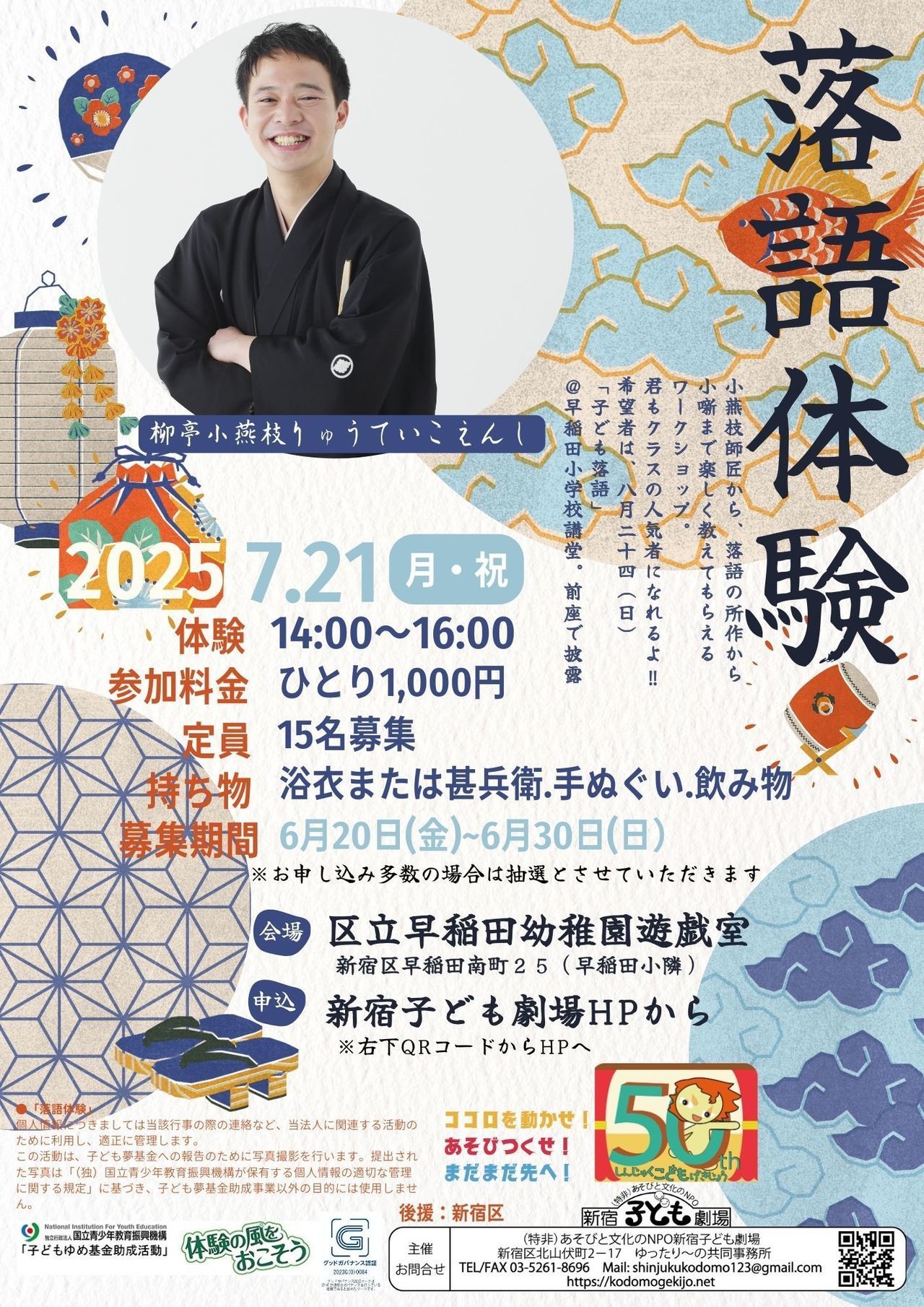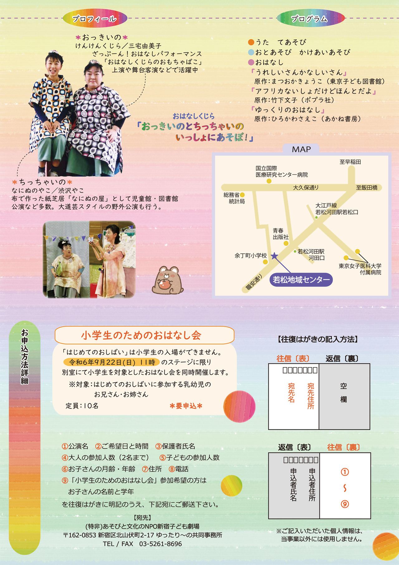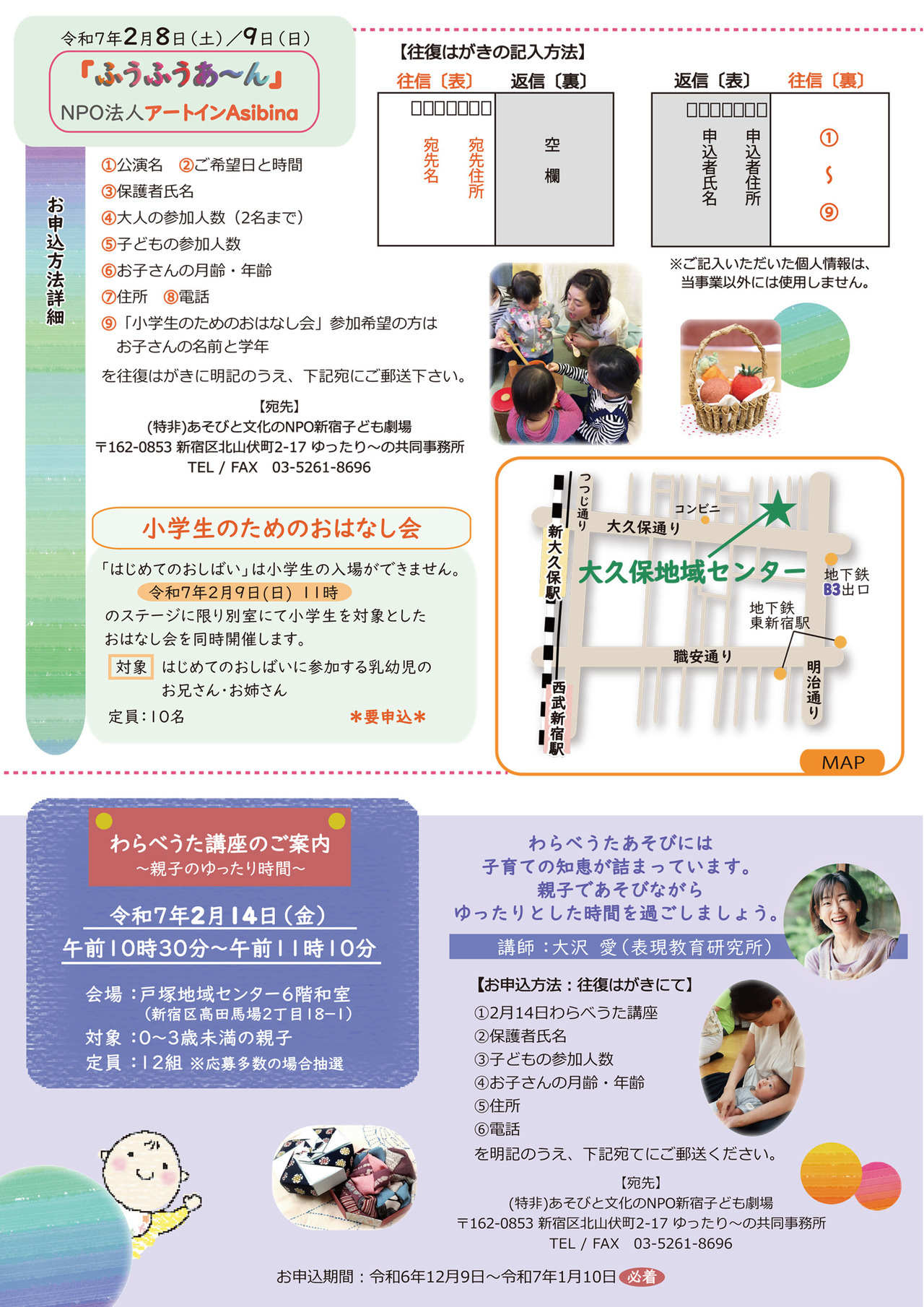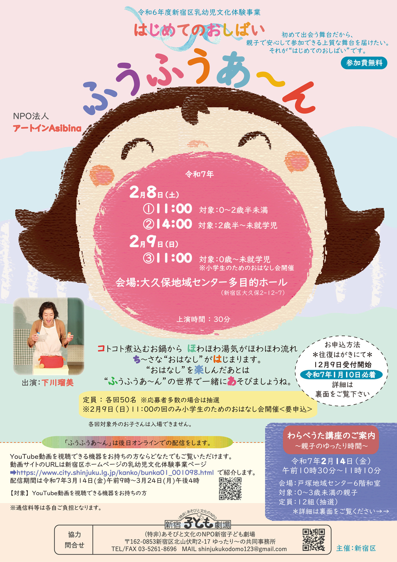 | 申込方法 | 新宿区ホームページの乳幼児文化体験事業ページにて | ||