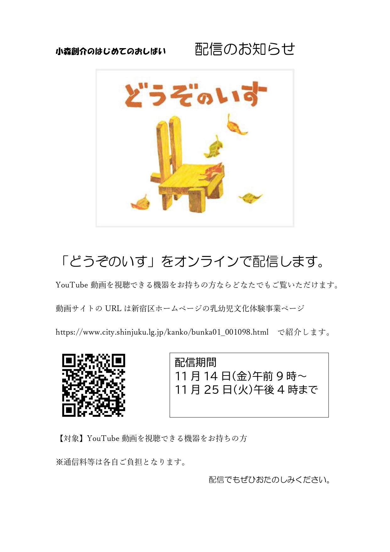 | 日時 | 配信期間 11月14日(金)9:00~ | ||