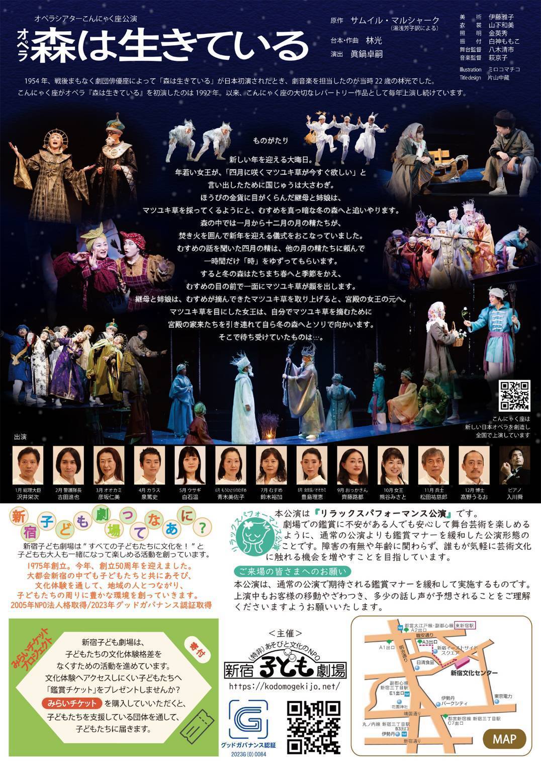 | オペラシアターこんにゃく座による珠玉の舞台 本公演は「リラックスパフォーマンス公演」です。劇場での鑑賞に不安のある方でも安心して舞台鑑賞を楽しめるように、通常の公演よりも鑑賞マナーを緩和した公演形態です。