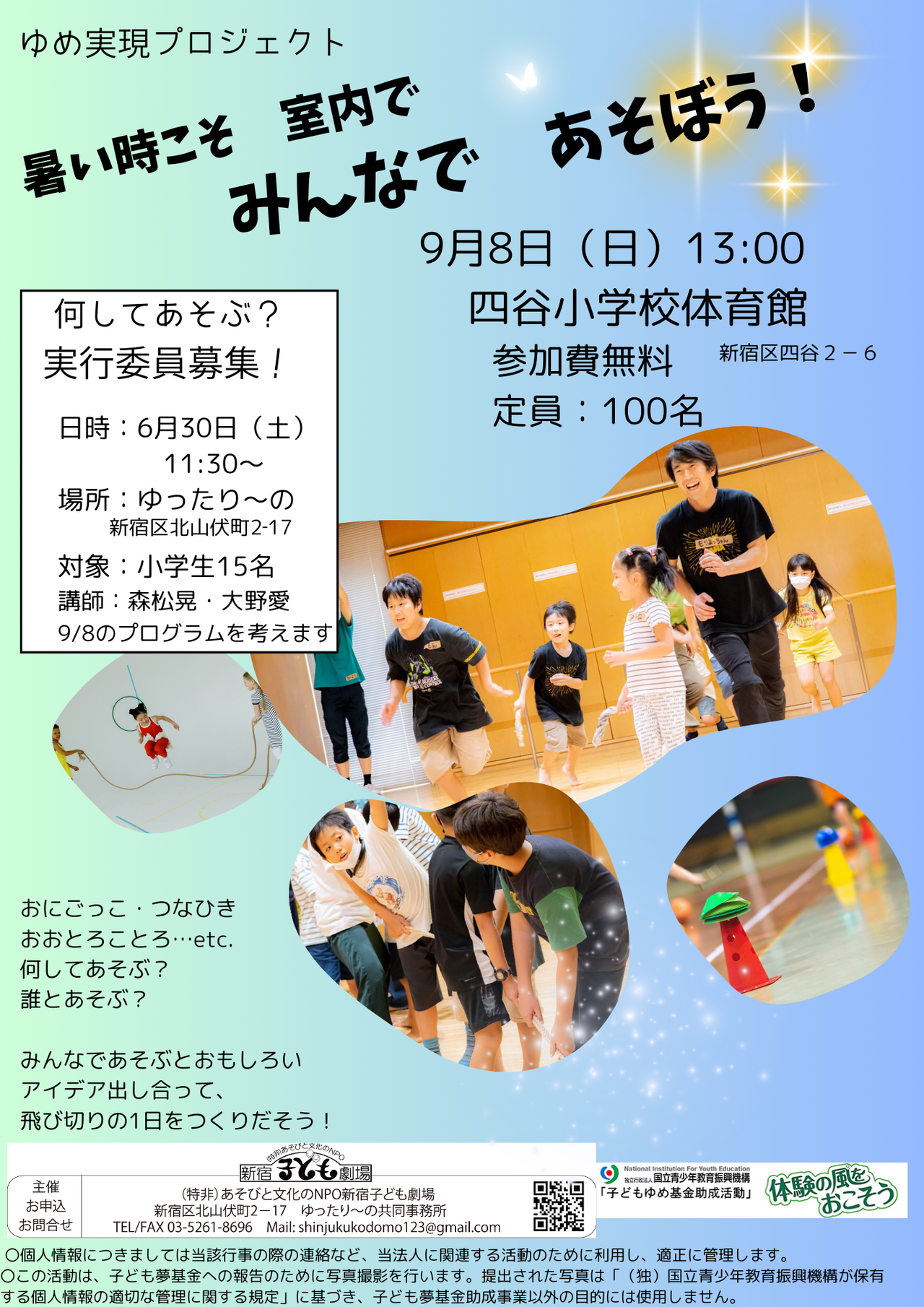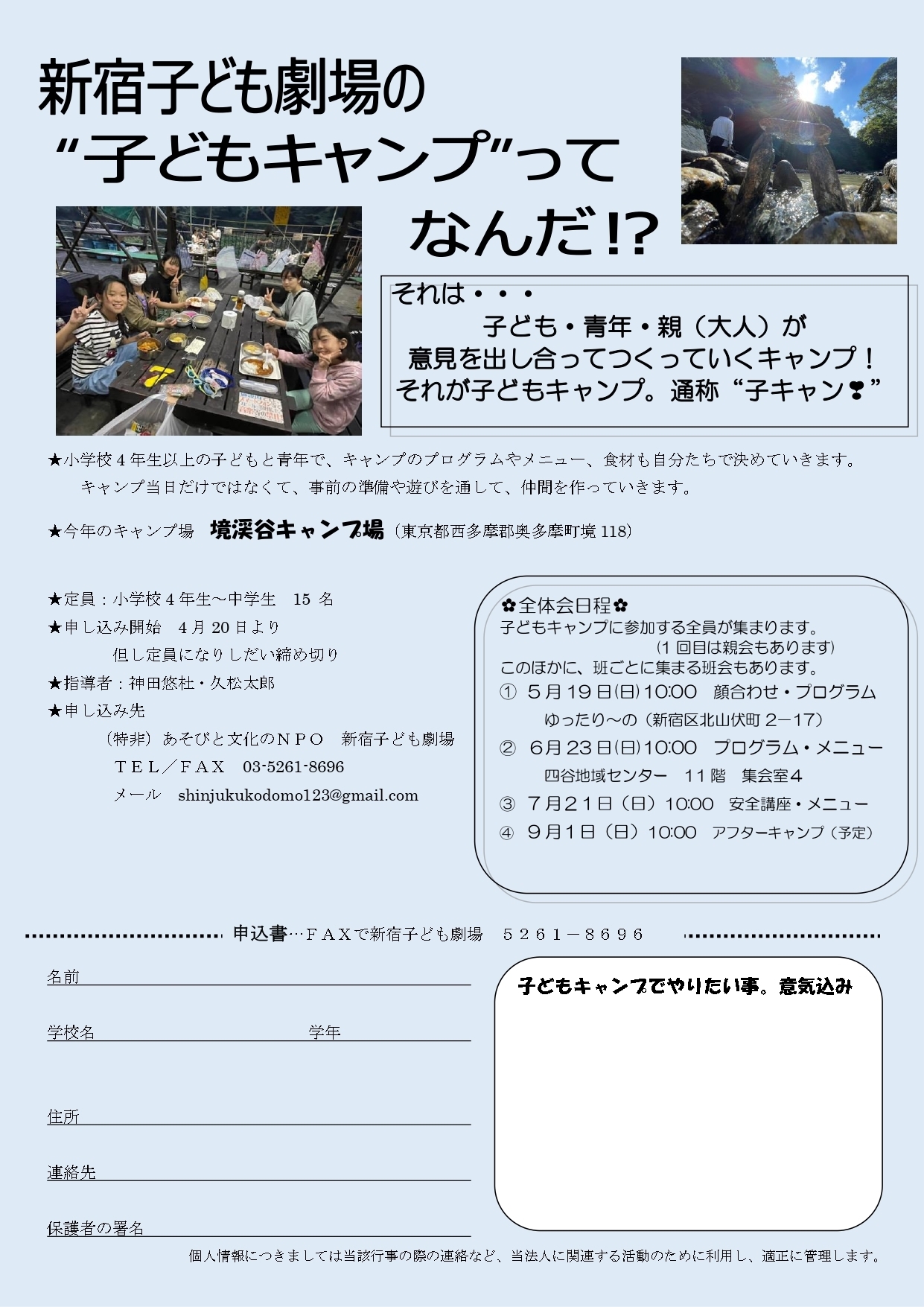 | 定員 | 4年生~中学生 15名 | ||